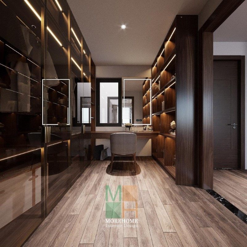 Bàn trang điểm gỗ óc chó hiện đại cung cấp cho gia chủ tiện nghi để chuẩn bị trang điểm trước khi đi ra ngoài, giúp họ thoải mái làm đẹp.
